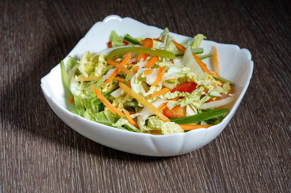 Капуста пекинская, паприка, морковь, огурец, помидор, масло подсолнечное