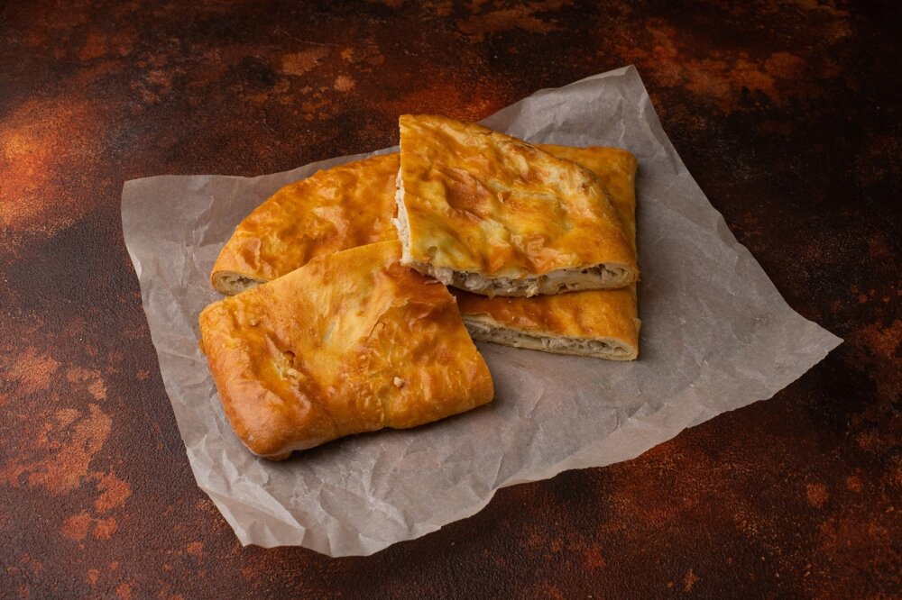 Филе ЦБ (халяль), мука пшеничная хлебопекарная, лук репчатый, масло сливочное и растительное, специи, дрожжи хлебопекарные.