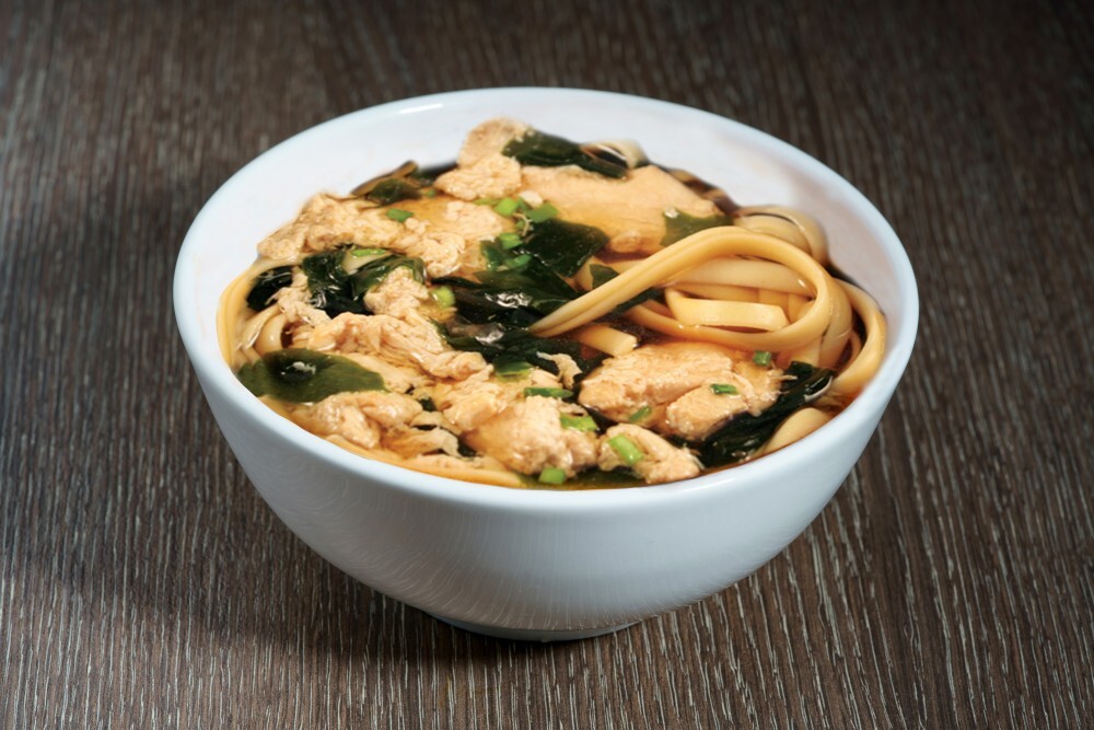 Куриное филе, пшеничная лапша удон, яйцо, вакаме