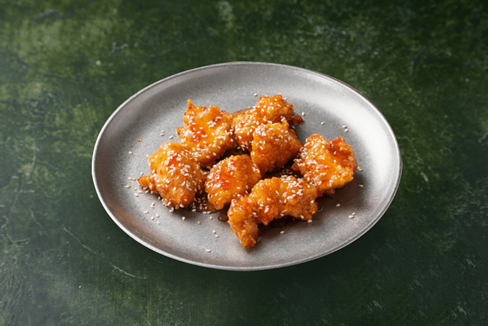 Филе куриного бедра, фирменная панировка, соус тайский чили, кунжут