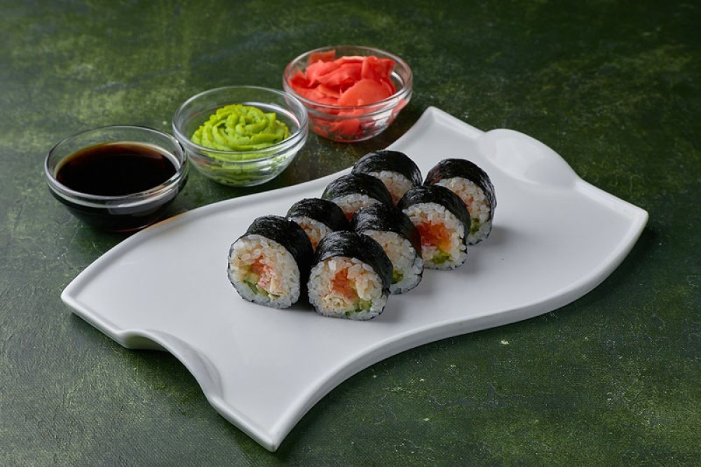 Лосось, снежный краб, авокадо, огурец, тайский соус чили