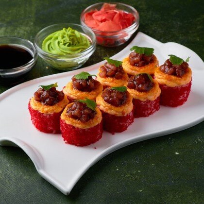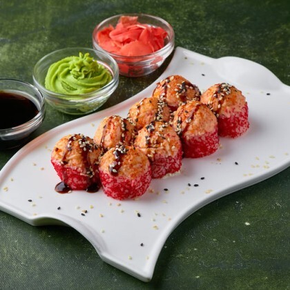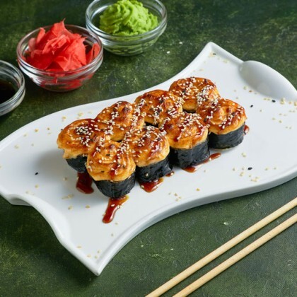 Краб, огурец, авокадо, унаги соус, сырный соус