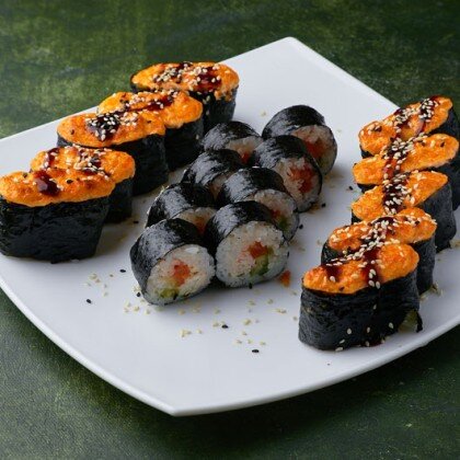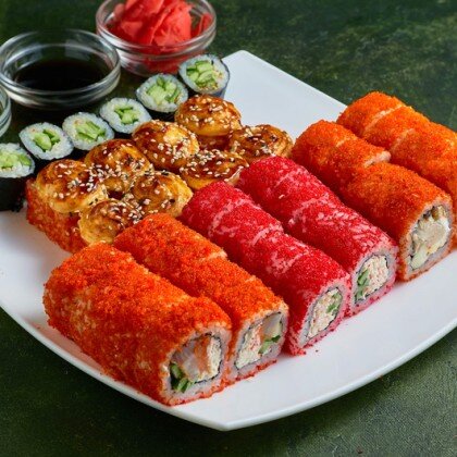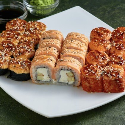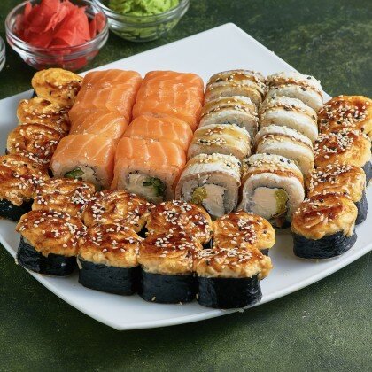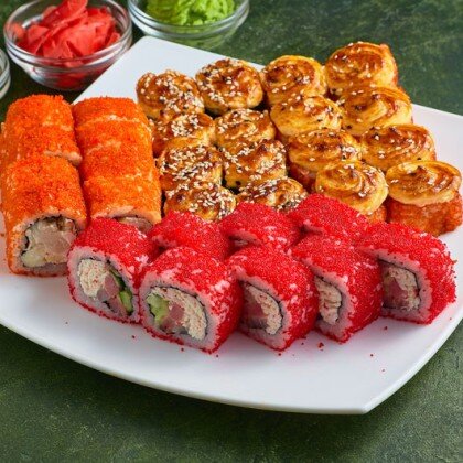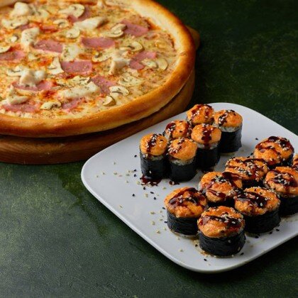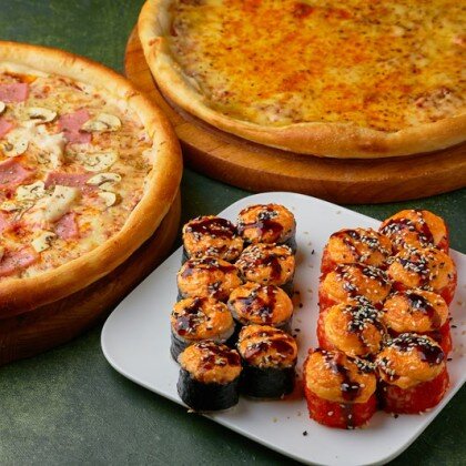 Пицца Маргарита 30см и Пепперони 30см, ролл Филадельфия и Калифорния краб